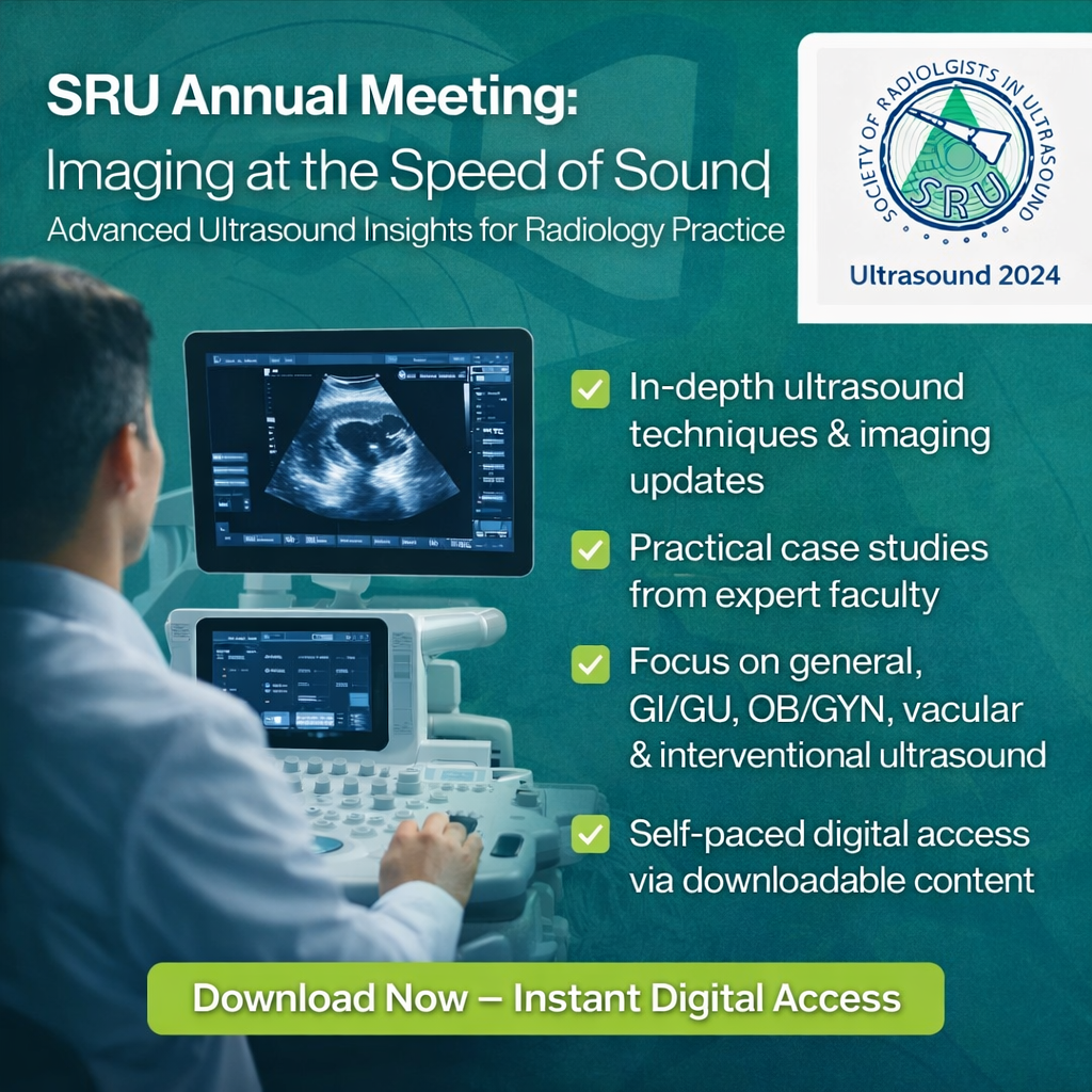 The SRU Annual Meeting: Imaging at the Speed of Sound – Recent Innovations in Ultrasound 2024 is an advanced educational resource designed for radiologists, sonographers, and medical professionals seeking to enhance their expertise in ultrasound imaging. This course offers in-depth insights into the latest advancements in ultrasound technology and techniques, focusing on applications in general radiology, gastrointestinal/genitourinary (GI/GU), obstetrics and gynecology (OB/GYN), vascular, and interventional procedures.